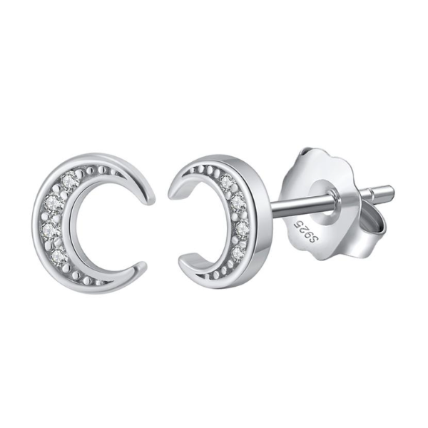 עגיל חצי ירח כסף 925 מצופה זרקונים